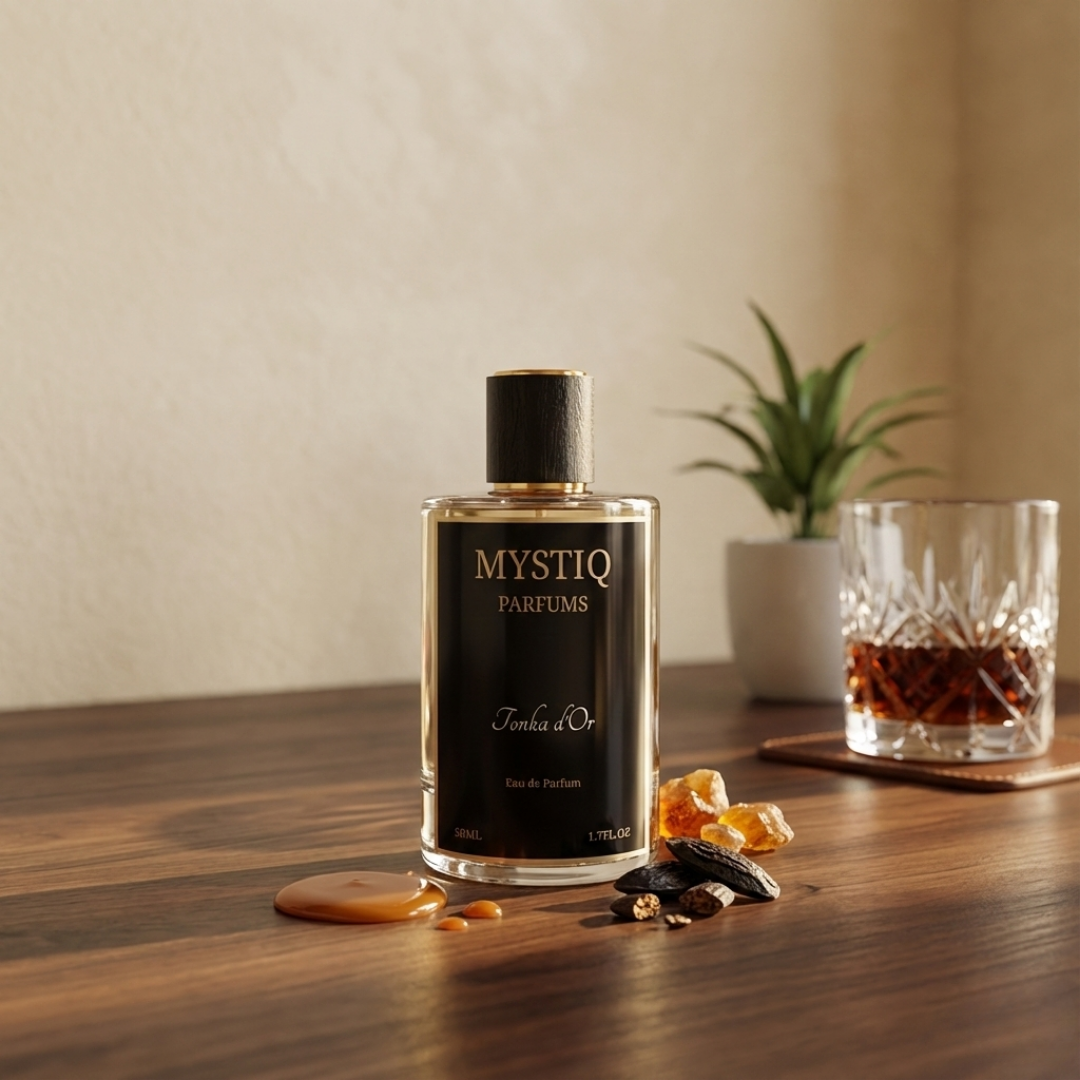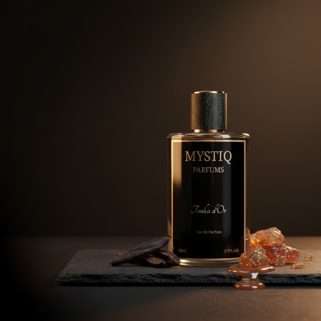 Tonka d’Or opens with refined florals and soft woods, layered with tobacco leaf and iris for a smooth, powdery elegance. At its heart, amber resin melts into golden caramel and sweet rum — rich, warm, and intoxicating. The base settles into creamy vanilla, tonka bean, sandalwood, and cashmere woods, leaving a deep, luxurious trail that lingers long after you’ve left the room.