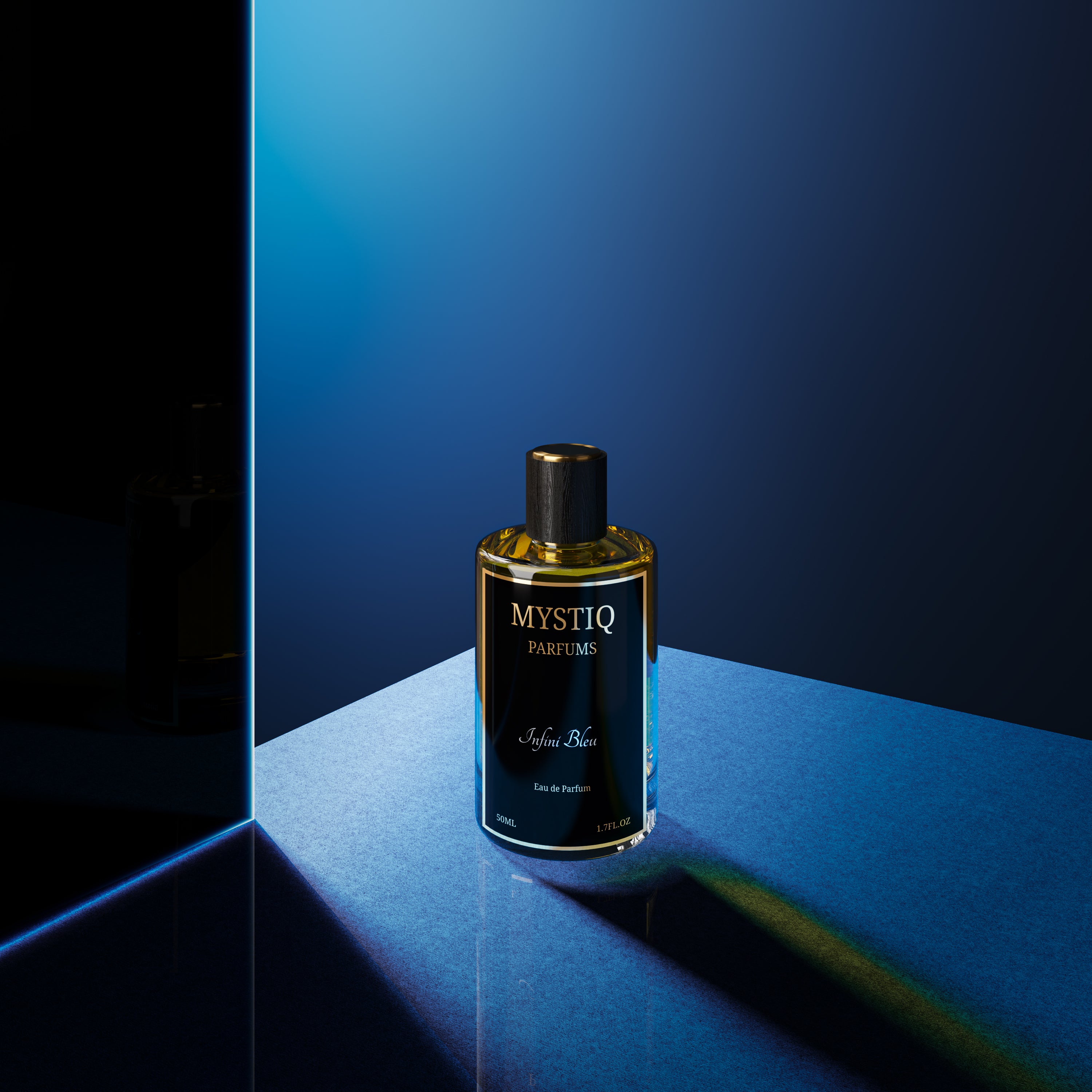 Infini Bleu opens with fresh basil, orange blossom, pear, and bergamot before unfolding into amber, jasmine, yuzu, and white tea. It settles into a sophisticated base of vetiver, fir balsam, opoponax, and cashmere wood with a touch of cinnamon — a fragrance of balance, freshness, and depth.